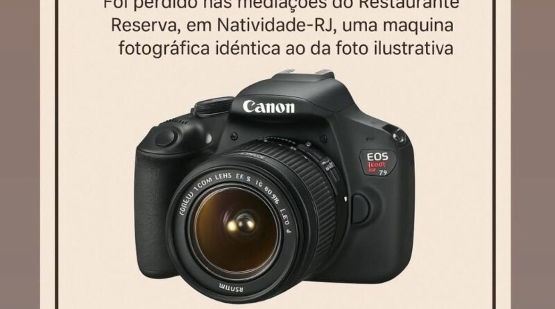 Read MoreACHADOS E PERDIDOS – Natividade-RJ Foi perdida nas mediações do Restaurante Reserva, em Natividade-RJ, uma máquina fotográfica semelhante à da
