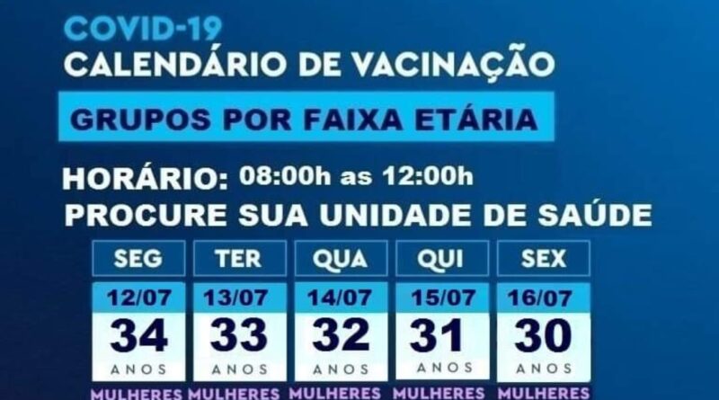 Read MoreConforme o calendário de vacinação, o município de Natividade irá vacinar pessoas de 30 anos ou mais até a próxima