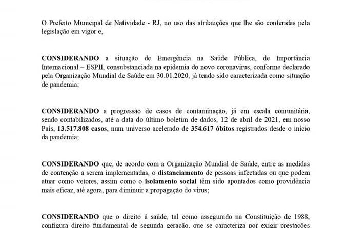 Read MoreA prefeitura de Natividade informa que o decreto foi prorrogado por mais 7 dias. Confira: