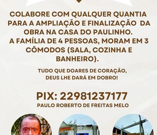 Read MoreColabore com qualquer quantia para ampliação e finalização da casa do Paulinho.