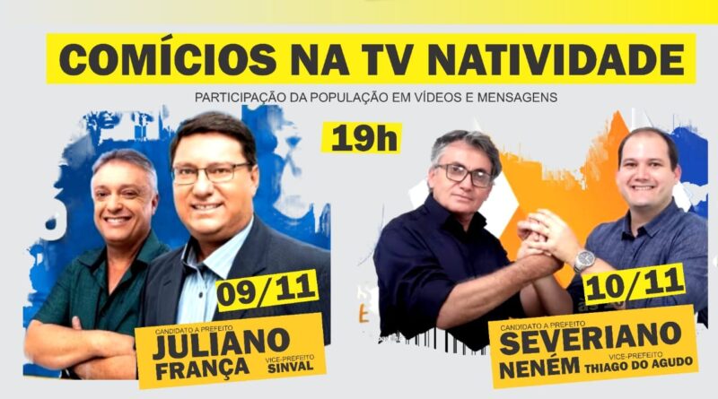 Read MoreEstamos na reta final para as eleições. A TV Natividade estará realizando, nesta segunda e terça-feira, às 19h, comícios com