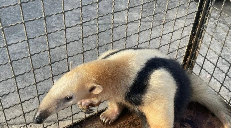 Tamanduá-bandeira é resgatado em escola de Porciúncula