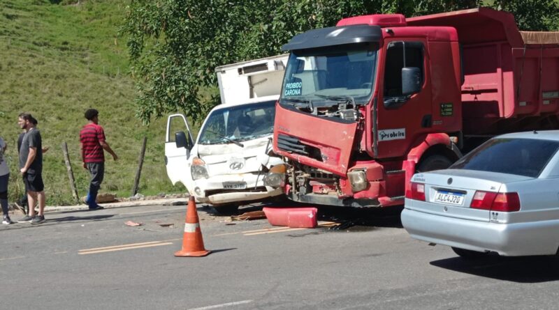Bombeiros de Itaperuna (RJ) são acionados para uma ocorrência de acidente envolvendo 2 carros e 2 caminhões