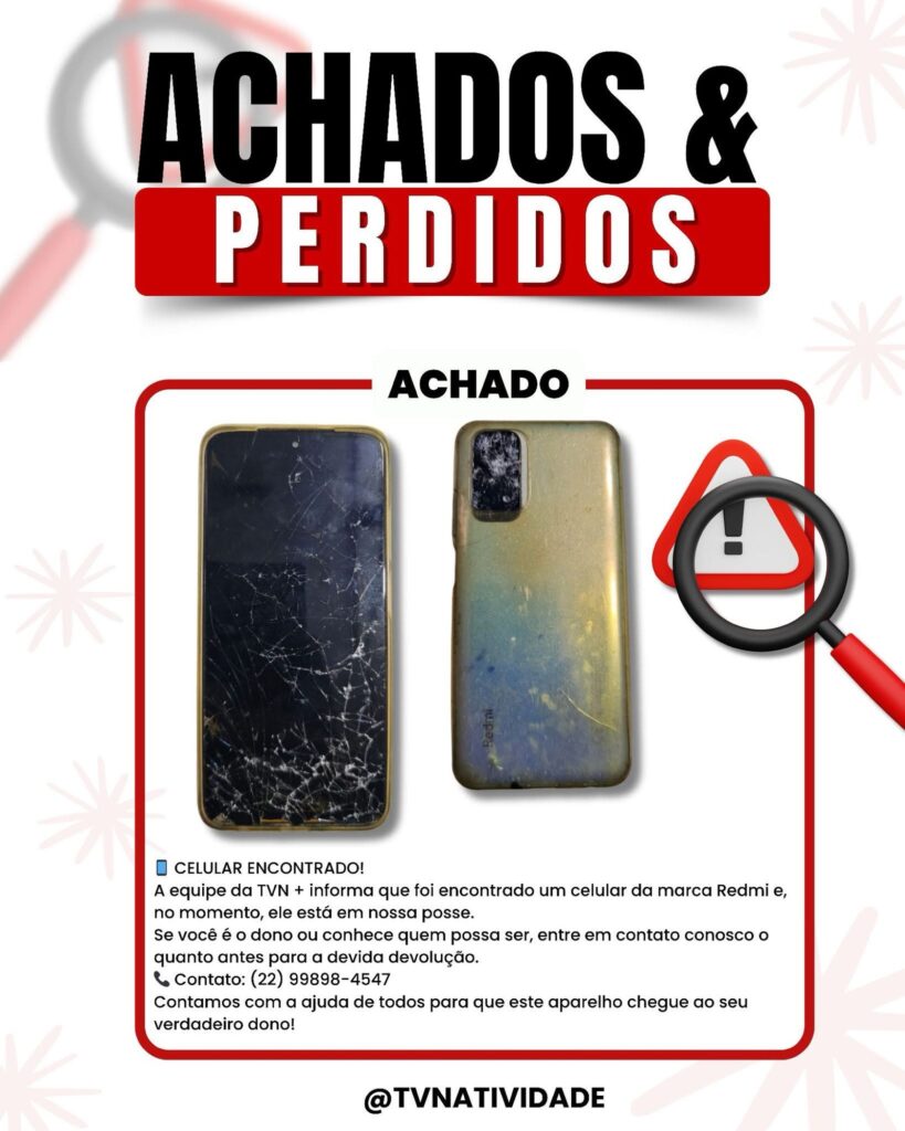A equipe da TVN + informa que foi encontrado um celular da marca Redmi e, no momento, ele está em nossa posse.