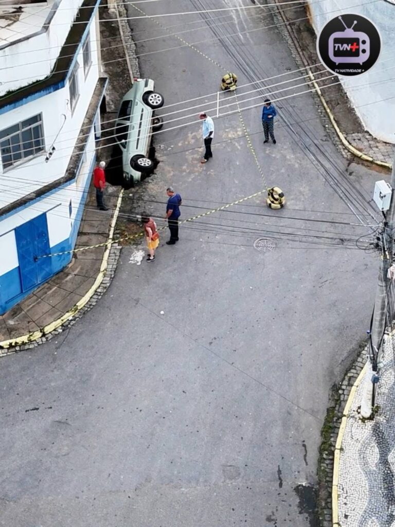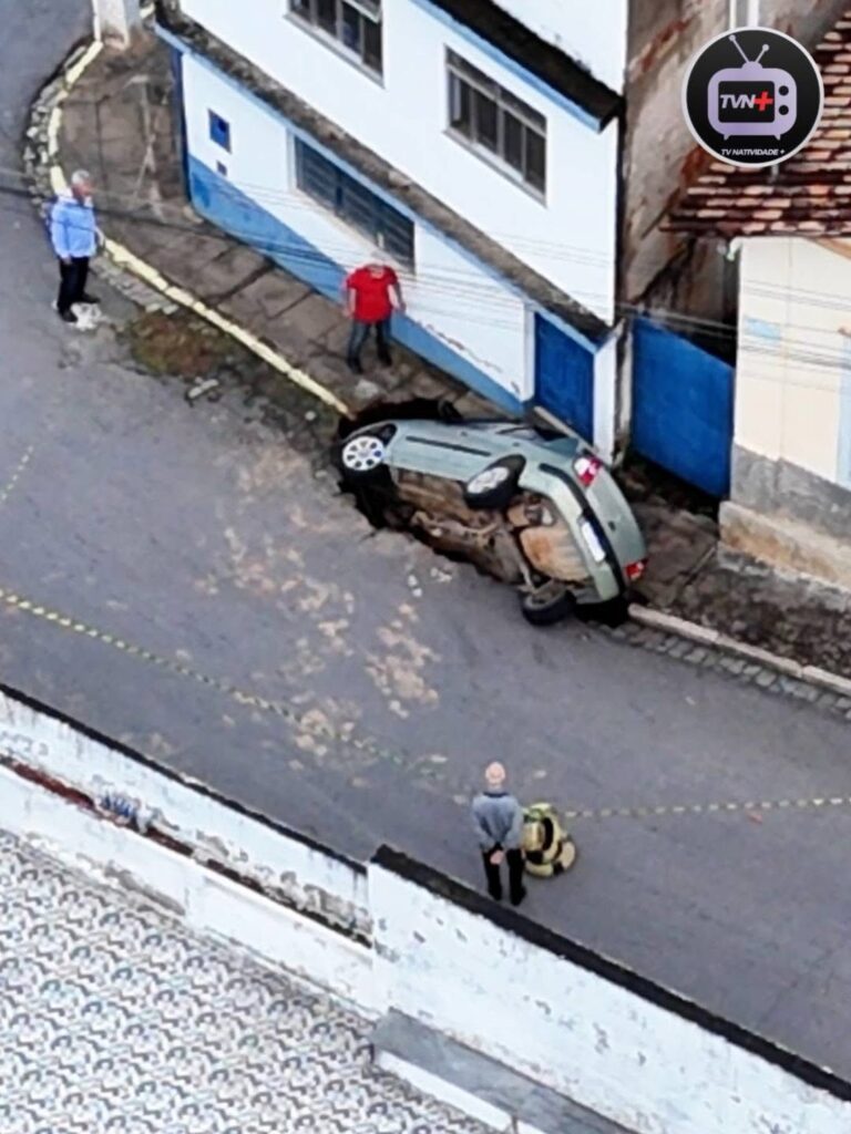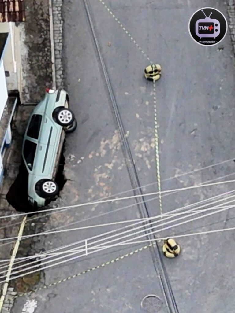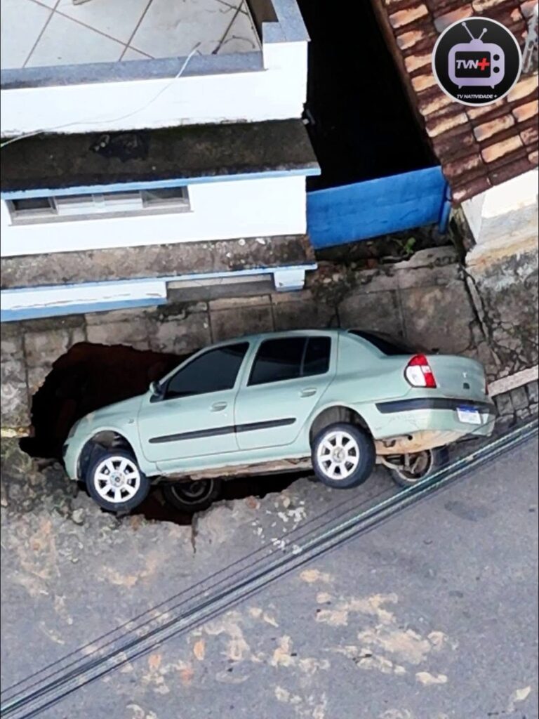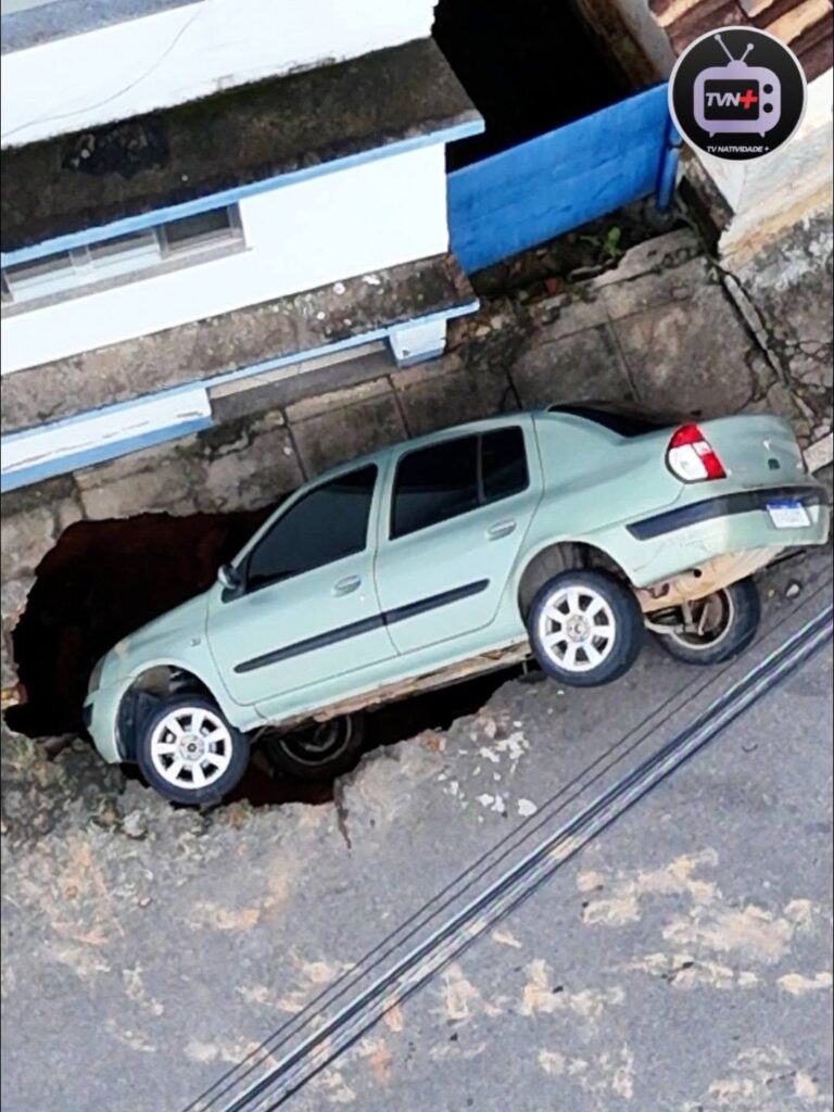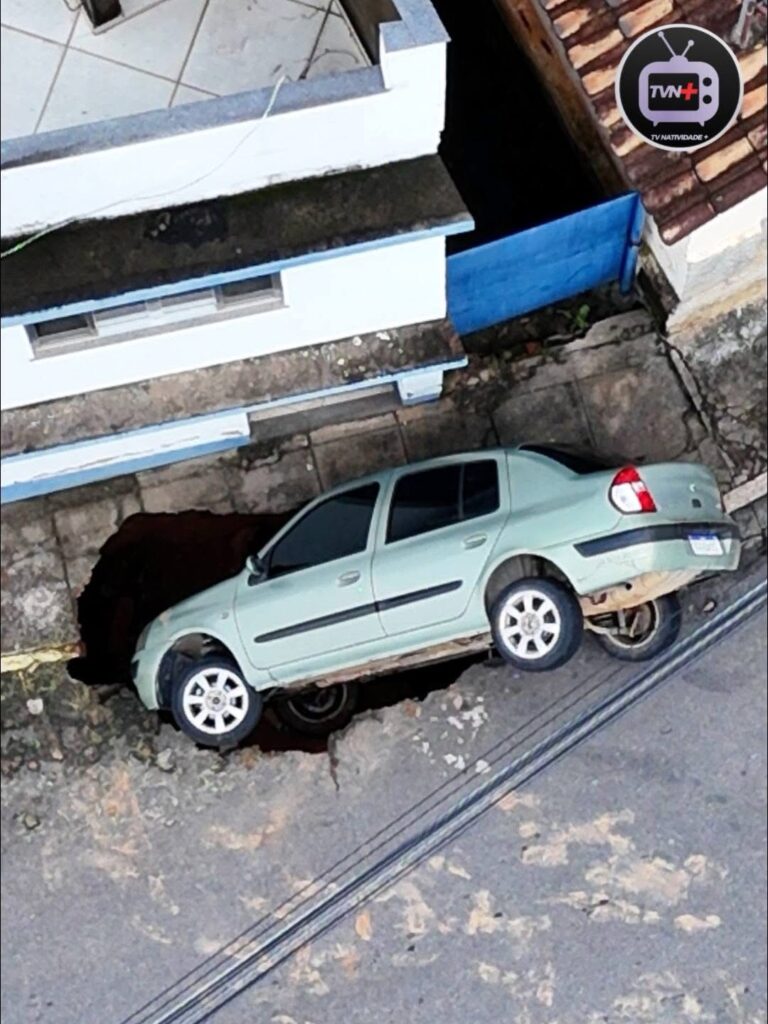 • Veículo é engolido por cratera que se abriu no Centro de Natividade durante a chuva