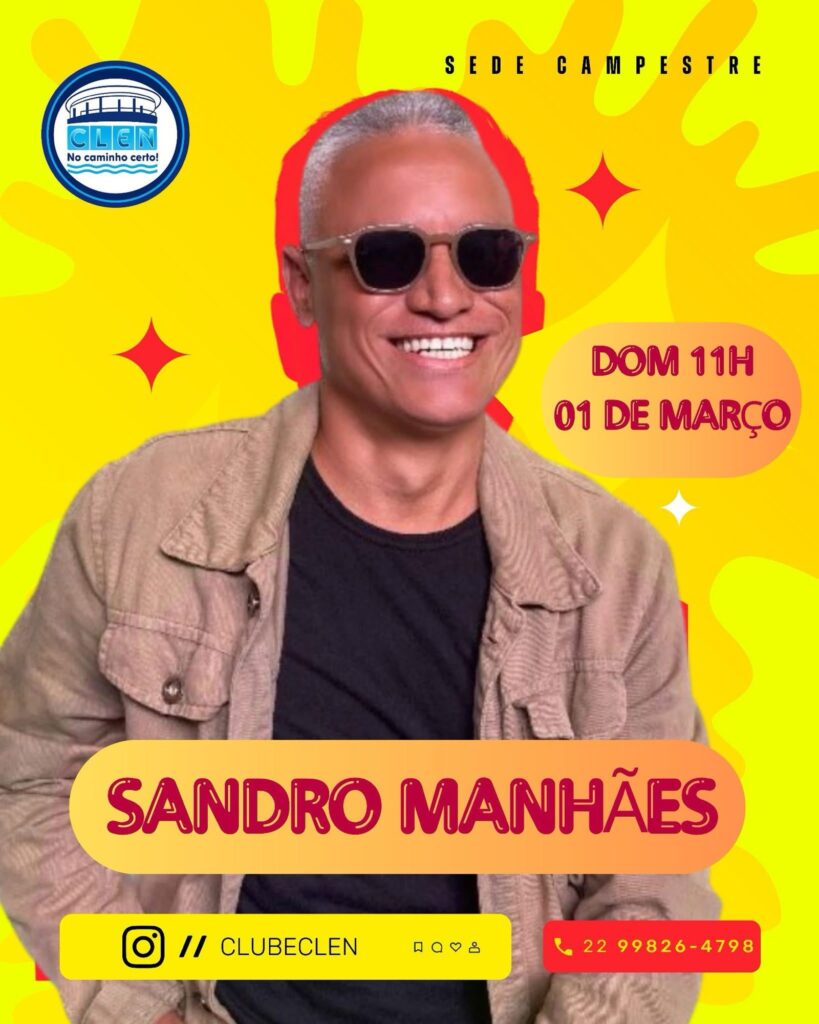 Neste domingo, dia 01 de março, a partir das 11h, o varandão da sede campestre do CLEN vai ferver com show ao vivo de Sandro Manhães!