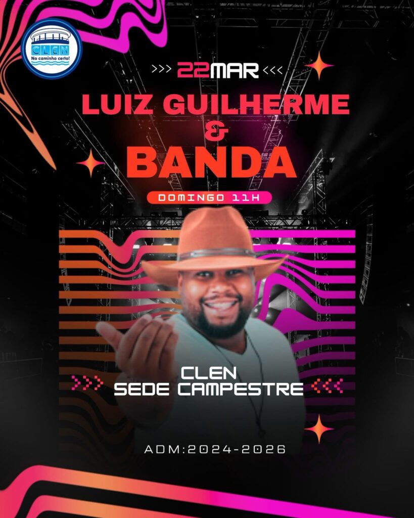 Neste domingo, dia 22 de março, tem show imperdível com Luiz Guilherme e Banda no Varandão da Sede Campestre do CLEN! 😍🎤