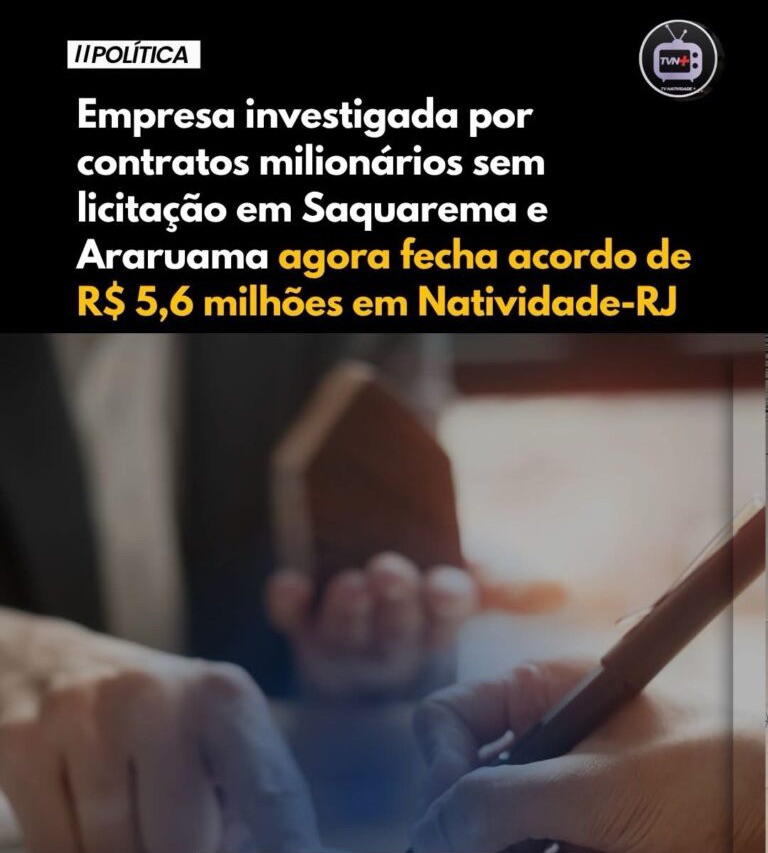 Empresa investigada por contratos milionários sem licitação em Saquarema e Araruama agora fecha acordo de R$ 5,6 milhões em Natividade