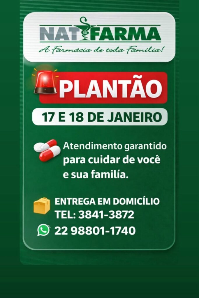 FOTOSNATIVIDADE Farmácia de Plantão Neste Final de Semana em Natividade TV Natividade 17 de janeiro de 2026