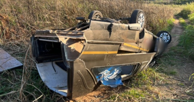 Carro de funerária capota na BR-356
