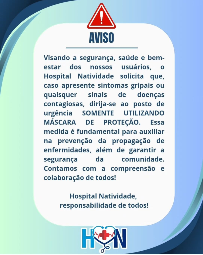 FOTOSNATIVIDADENOTÍCIAS Hospital Natividade Reforça Uso Obrigatório de Máscara para Pacientes com Sintomas Gripais TV Natividade 25 de junho de 202527 de junho de 2025 0 Comments