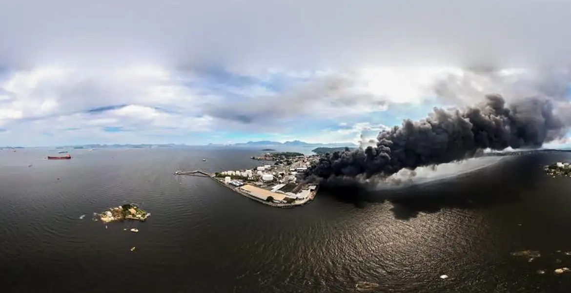 Incêndio em fábrica na Ilha do Governador ameaça Baía de Guanabara, alerta Inea