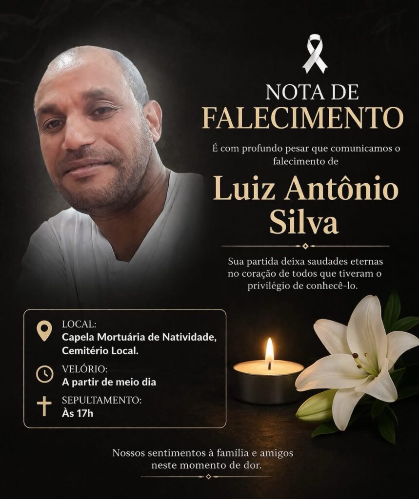 O velório de Luiz Antônio Silva será realizado na Capela Mortuária de Natividade, com início a partir do meio-dia. O sepultamento está previsto para as 17h, no cemitério local.