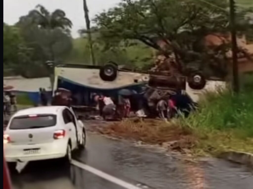 Ônibus capota na BR-356 em Itaperuna e deixa 30 feridos, sendo 10 em estado grave