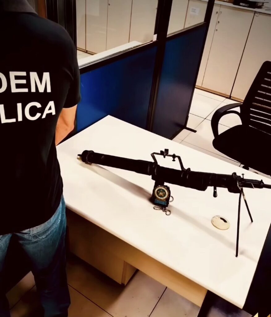 Já na unidade policial, novas informações indicaram que, nas proximidades do local da abordagem, estaria escondida uma réplica de fuzil. As equipes retornaram à área e conseguiram localizar o objeto, identificado como uma réplica de fuzil calibre .30.