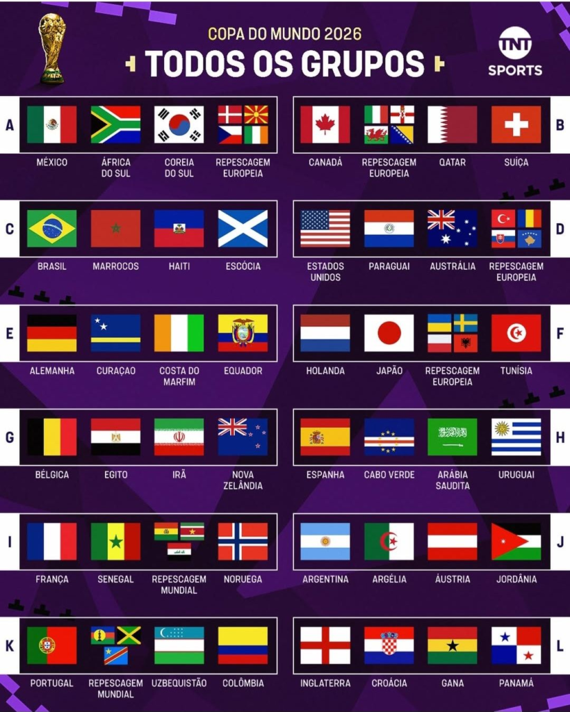 BRASILFOTOSMUNDO Todos os grupos da Copa do Mundo 2026 TV Natividade 5 de dezembro de 20256 de dezembro de 2025 0 Comments