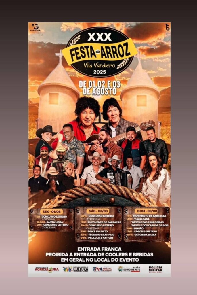TV Natividade+ confirma cobertura da Festa do Arroz em Barão do Monte Alto com show de Teodoro & Sampaio